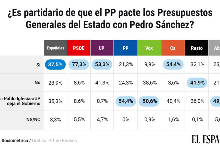 Más de la mitad de los votantes del PP quiere pactos con el PSOE sólo si Iglesias sale del Gobierno