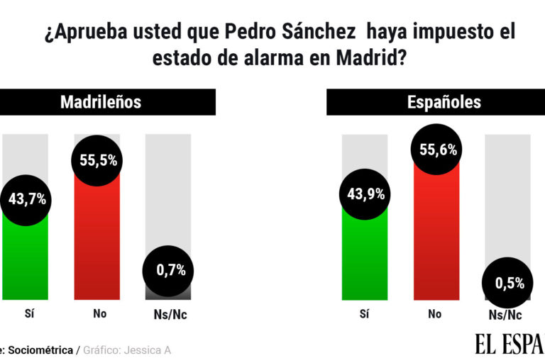 El 55% rechaza el estado de alarma en Madrid y la mayoría culpa a Sánchez de la crisis con Ayuso