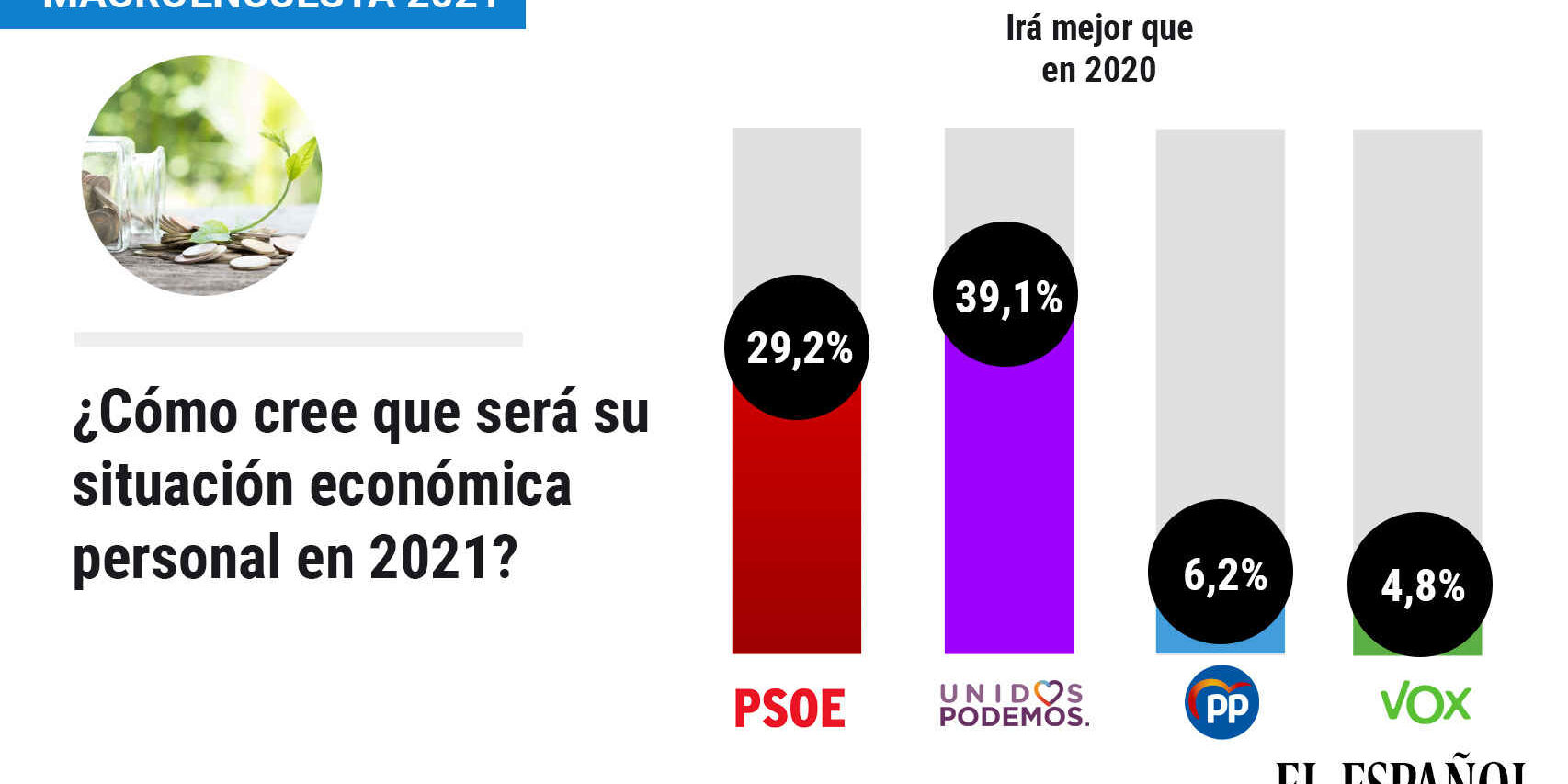 Sólo los votantes del PSOE y Podemos creen que su situación económica personal mejorará en 2021
