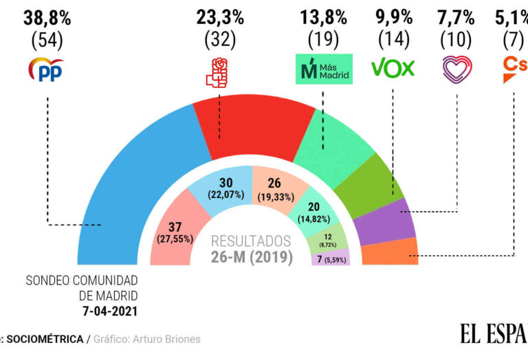 Partido Popular, Vox y Cs sumarían un total de 75 escaños, superando holgadamente la mayoría absoluta, que se ubica en los 69.