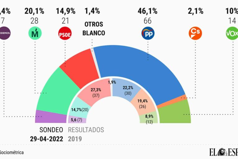 Ayuso rozaría la mayoría absoluta en 2023 y Más Madrid consumaría su ‘sorpasso’ al PSOE