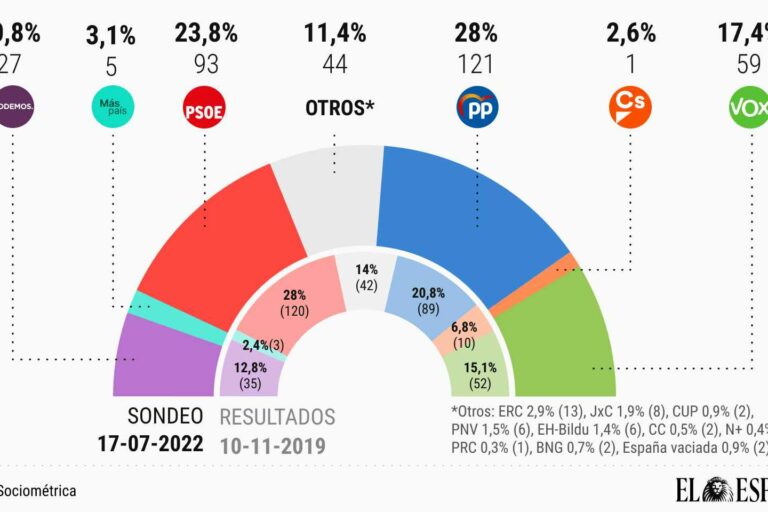 Sánchez remonta tras la cumbre de la OTAN y el Debate, pero el PP de Feijóo sigue 28 escaños por delante 18 julio, 2022 Noticia completa