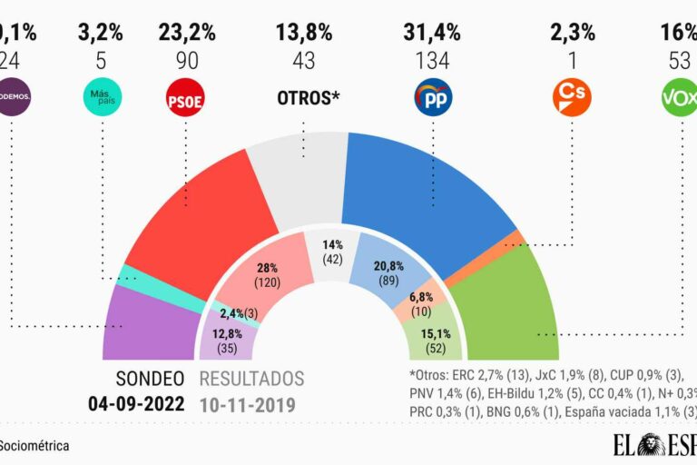 El PSOE se descuelga de la remontada iniciada tras la cumbre de la OTAN y pierde fuelle en el inicio del curso político, retrocediendo en 3 escaños.