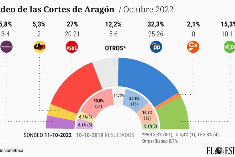 Teruel Existe entraría con cuatro diputados y Ciudadanos perdería los 12 escaños que tiene ahora en las Cortes autonómicas.