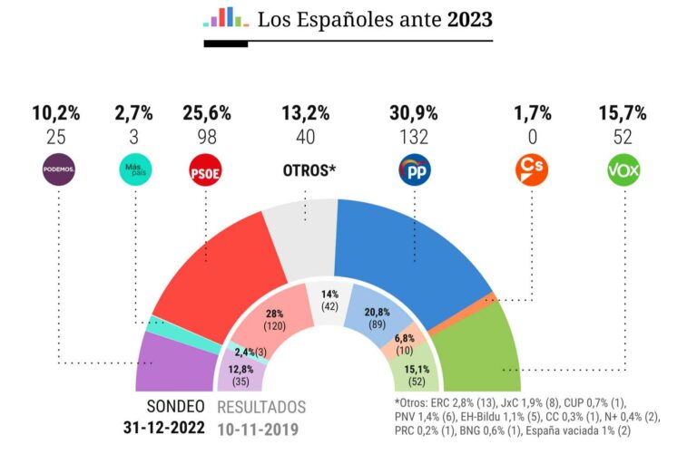El PP de Feijóo inicia el doble año electoral con 5,3 puntos de ventaja sobre Sánchez