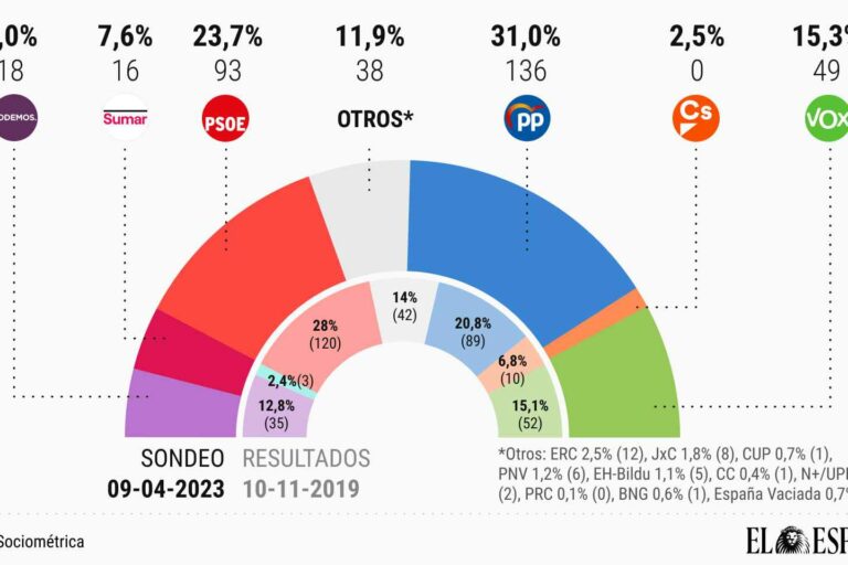 El promedio de encuestas corrobora que Sumar debilita a las izquierdas aunque Feijóo se estanque