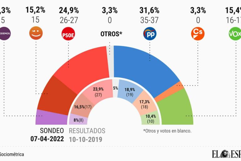 PP y Vox pueden sumar hasta 54 diputados frente al máximo de 48 que la encuesta de SocioMétrica atribuye a la izquierda.