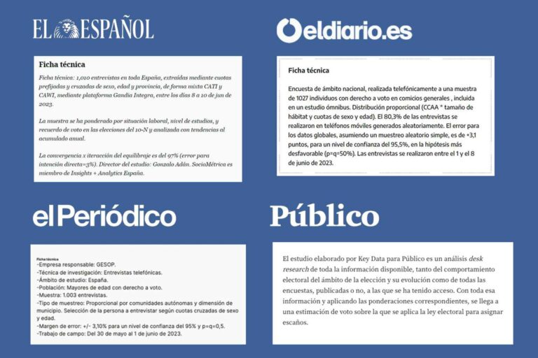 Los socialistas no exigen ese requisito a medios afines que publican sondeos con fichas técnicas muy similares a las de este periódico.
