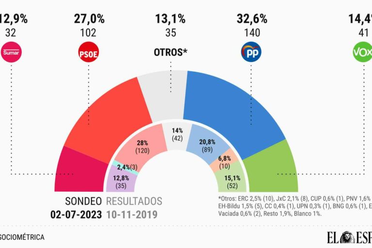 El partido de Feijóo se mantiene como el partido con mayor intención de voto y obtendría el 32,6% de las papeletas.