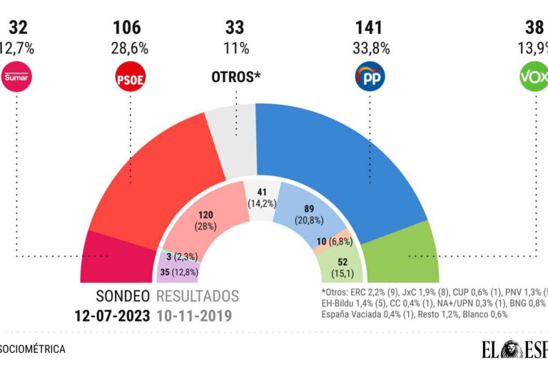 El PP rompe la barrera de los 140 escaños y recupera la tendencia al alza tras el éxito de Feijóo en el debate