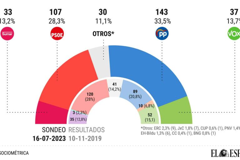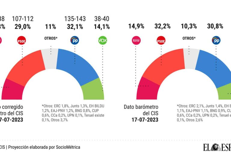 El modo habitual de cálculo empleado por las empresas demoscópicas daría a Feijóo ganador con el 32,1% de los votos y entre 135 y 143 escaños.