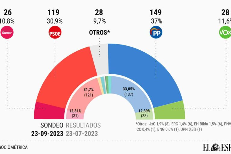 Feijóo se alimenta de descontentos del PSOE, aunque Sánchez cae menos gracias al trasvase de votos de Sumar. Junts ganaría un escaño y ERC lo perdería, por lo que el independentismo premia la estrategia de Puigdemont.