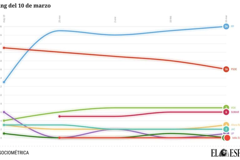 En las elecciones generales, el PP llegaría a 159 escaños frente a 110 del PSOE. Junts conseguiría 10 por sólo 5 de Esquerra.