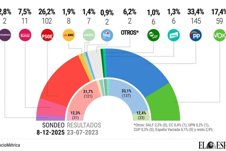 Más información: Feijóo supera a Sánchez en 41 escaños y 6,5 puntos: podría gobernar en solitario con la abstención de Vox