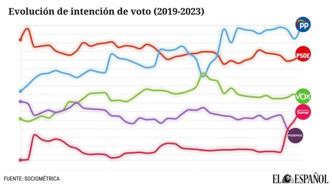 Este lunes, EL ESPAÑOL publicará la última encuesta sobre intención de voto elaborada por SocioMétrica, que refleja una ligera mejoría del PSOE. Noticia completa