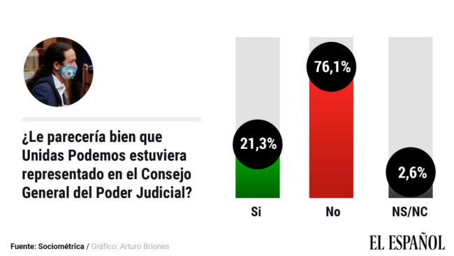 Sondeo SocioMétrica-EL ESPAÑOL.- Sólo uno de cada cinco españoles (21,3%) desea que los de Iglesias entren en el órgano de gobierno de los jueces. Noticia completa
