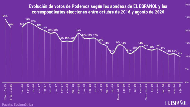 Sondeo SocioMétrica-EL ESPAÑOL.- El PSOE (27,3%), mantiene su ventaja sobre el PP (24,1%), con un leve descenso de Vox (14,3%) y un ligero incremento de Cs (8,7%). Noticia completa