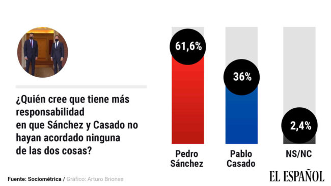 El 61,6% de los españoles atribuye al Gobierno la responsabilidad de no pactar con el PP. El 36% piensa que Pablo Casado dinamitó cualquier opción de acercar posturas. Noticia completa