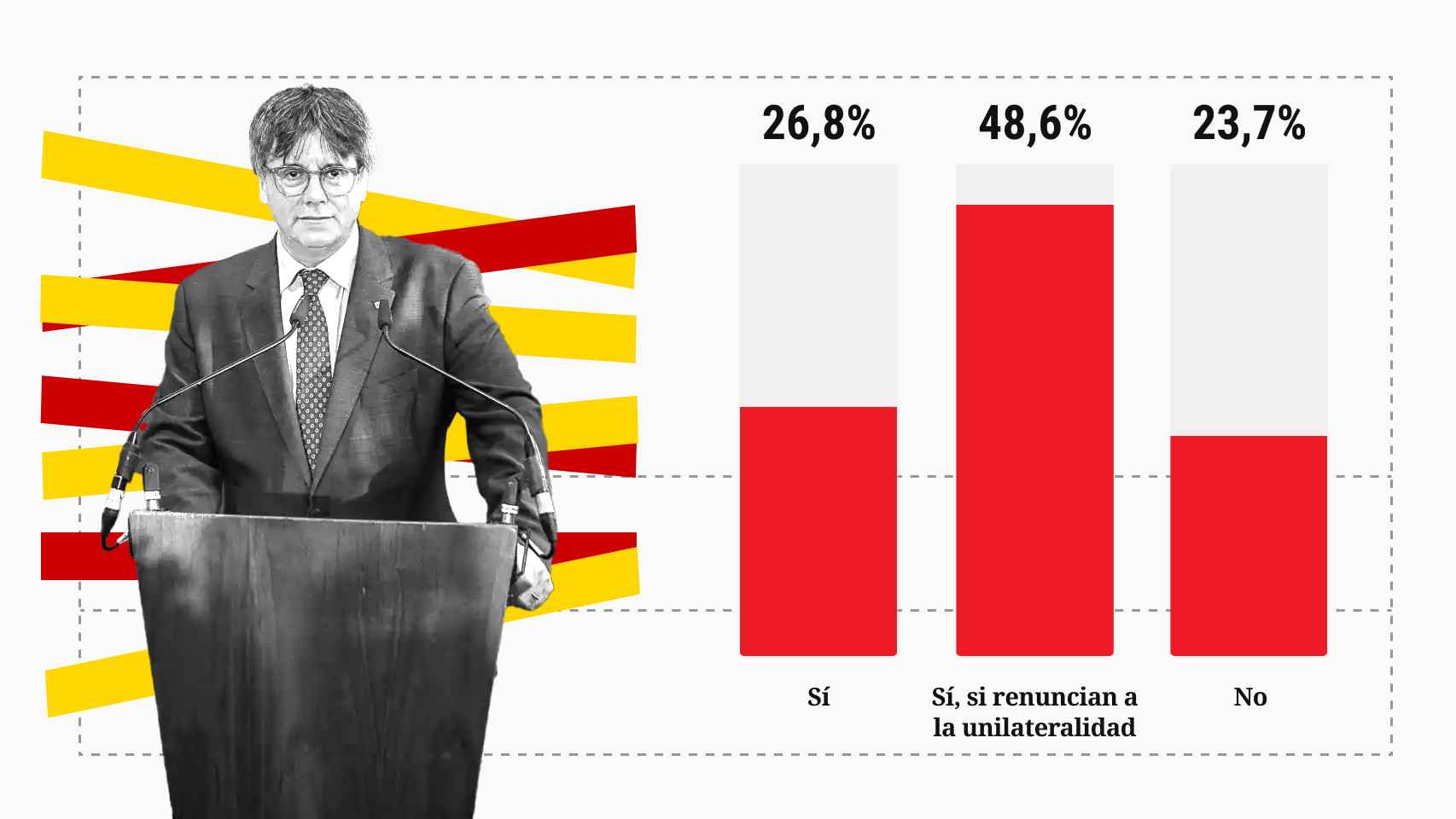 DetallesEn el conjunto de España, sólo la apoyaría un 14%, pero subiría al 34% si Puigdemont cambiara de actitud. El 55,5% de los catalanes rechaza la amnistía en cualquier caso. Noticia completa