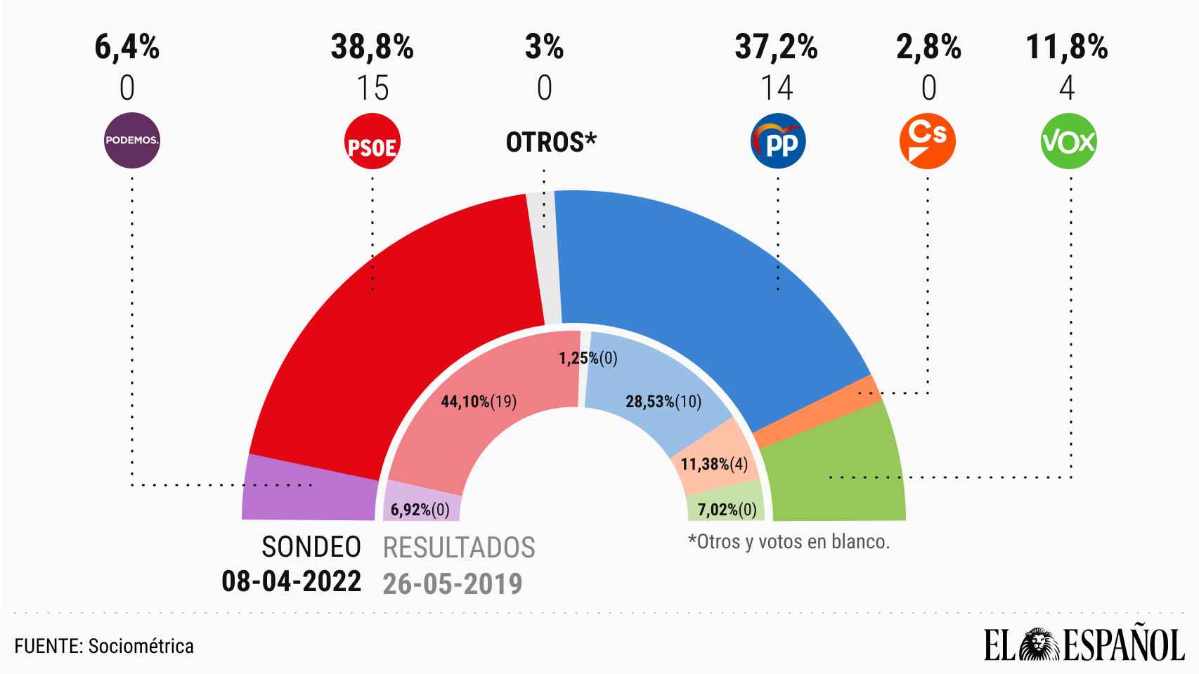 El PP sube 1,2 puntos en los núcleos urbanos del sur de la región, mientras que en la capital y el resto de municipios mejora 7 décimas. Noticia completa