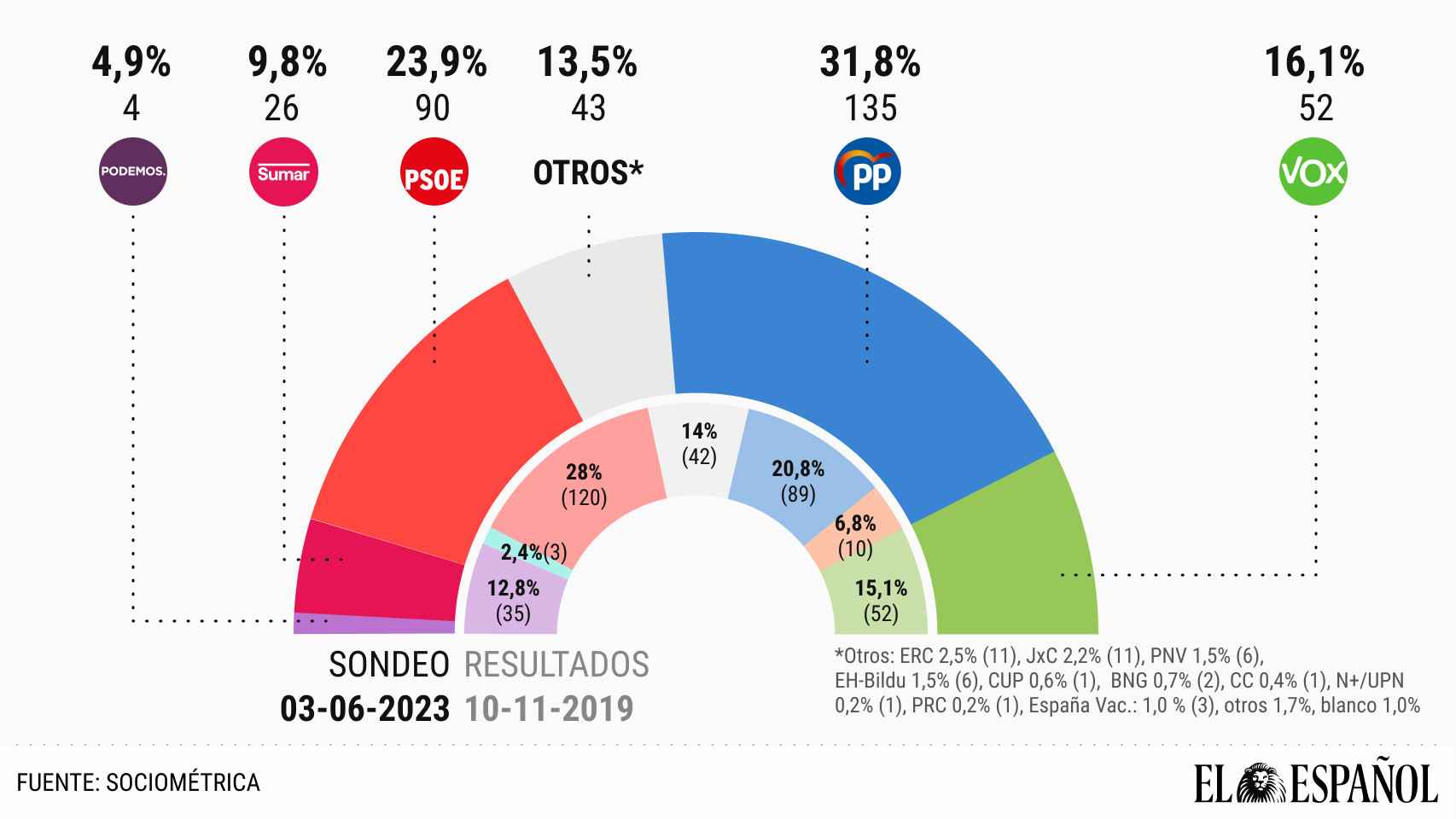 La nueva coalición de la vicepresidenta del Gobierno, en comparación con los resultados de Podemos en 2016, se deja hasta 38 escaños en el Congreso. Noticia completa