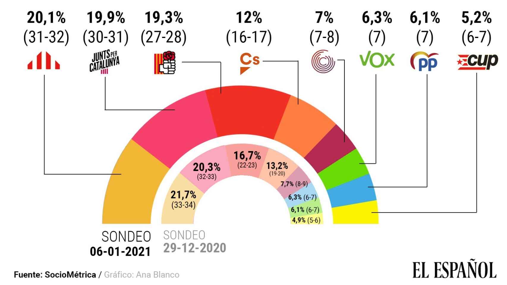 DetallesLa candidatura del ministro de Sanidad sube la intención de voto del PSC un 2,6% y estrecha la diferencia con ERC de 5 puntos a 8 décimas en siete días. Noticia completa