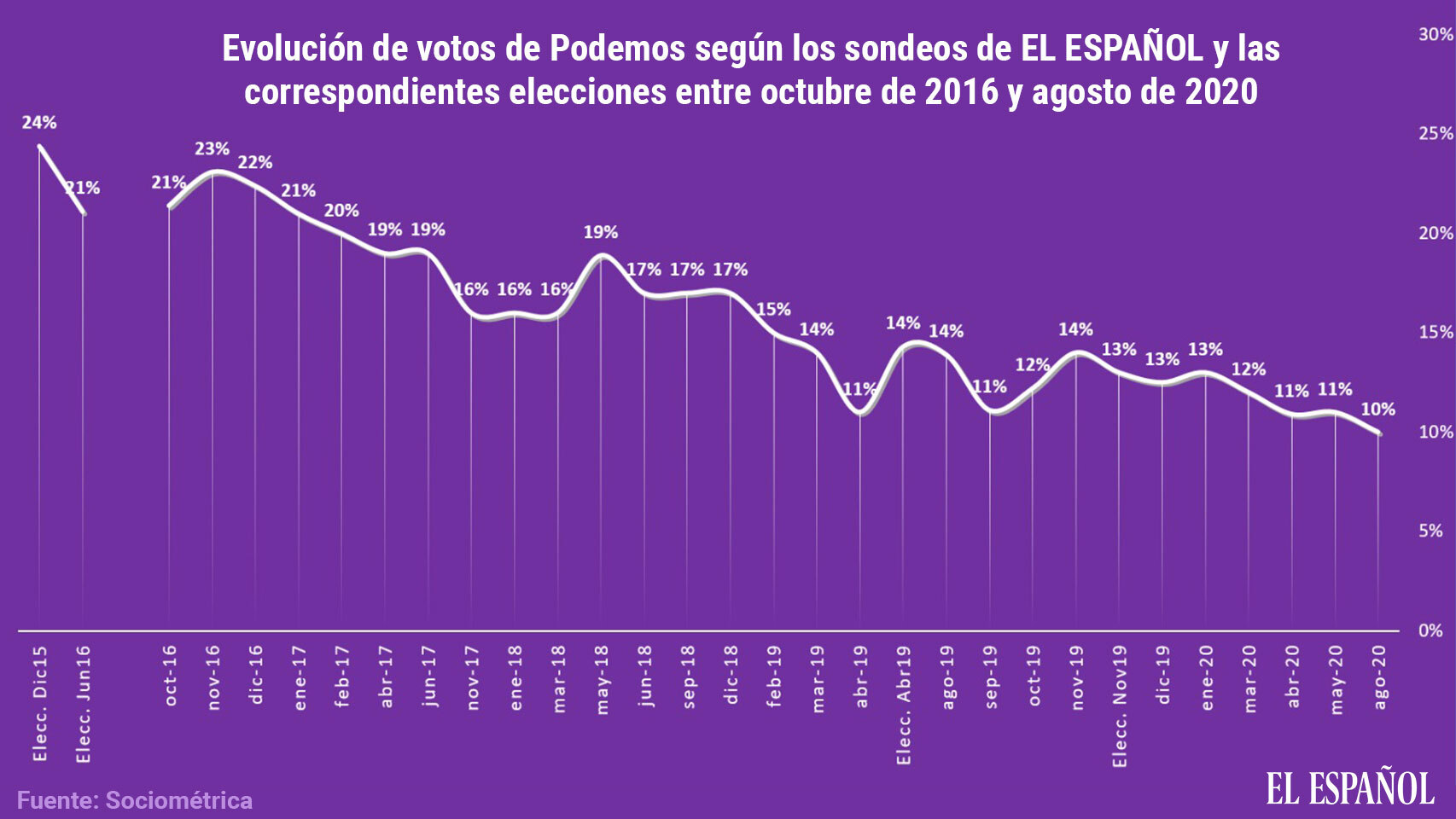 Sondeo SocioMétrica-EL ESPAÑOL.- El PSOE (27,3%), mantiene su ventaja sobre el PP (24,1%), con un leve descenso de Vox (14,3%) y un ligero incremento de Cs (8,7%). Noticia completa